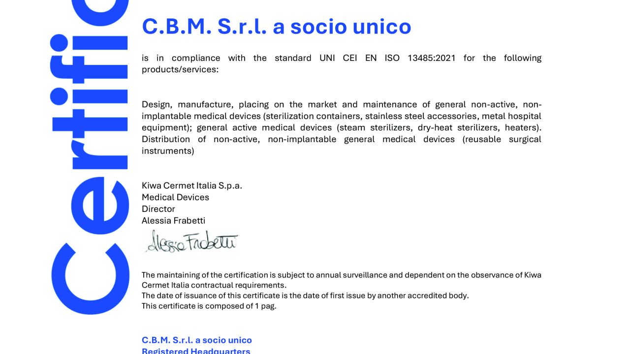 C.B.M. is pleased to announce that it has obtained the extension of its CEI UNI ...
